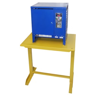 Este equipo está construido con acero de servicio pesado y proporciona un lugar conveniente para almacenar temporalmente una batería industrial durante el servicio de carretillas elevadoras.