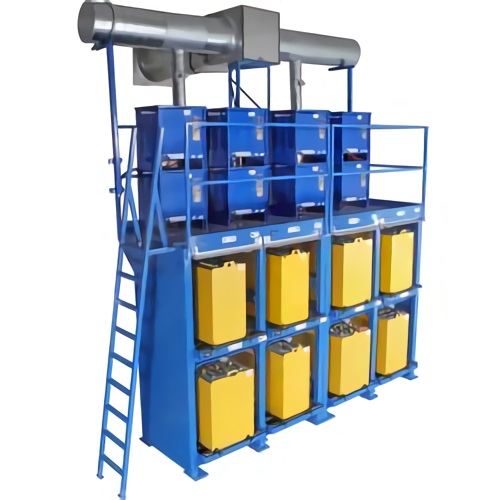 Proporciona un espacio seguro y conveniente para lavar las baterías de la carretilla elevadora extraída verticalmente. Contenga la sobrepulverización y agregue vida a las baterías.