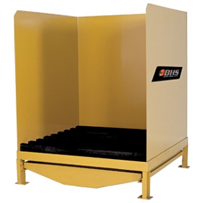 Proporciona una ubicación conveniente para lavar el electrolito de las baterías de la carretilla elevadora. Tiene rodillos de polietileno anti chispas para deslizar fácilmente las baterías.