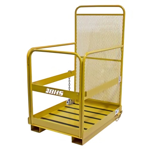 Se conecta de forma segura a una carretilla elevadora para elevar a un individuo para tareas de mantenimiento aéreo. La plataforma se sujeta para levantar las horquillas de la carretilla.