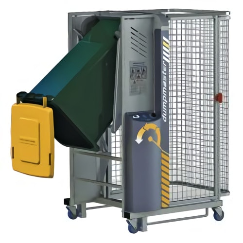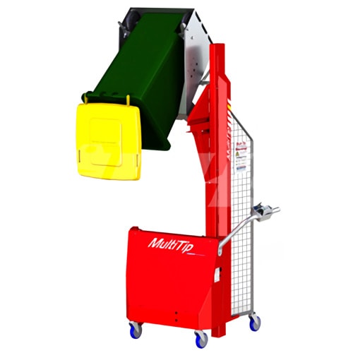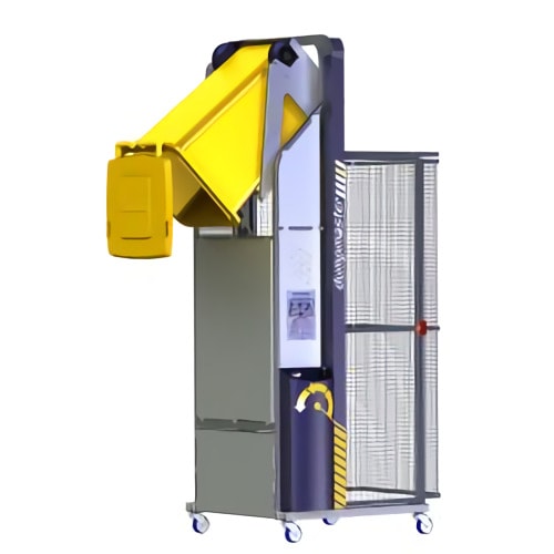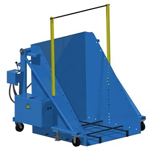 Es un accesorio para montacargas que lo convierte en un contenedor de basura portátil adecuado para contenedores cúbicos, contenedores de paletas o megabins. Tiene una rotación de 135°.
