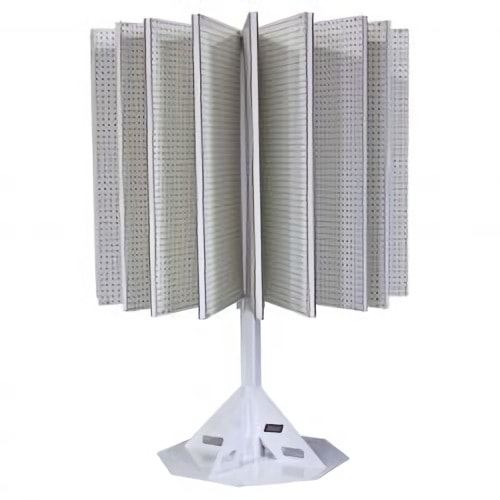 Sostiene de forma segura cuatro cargadores de batería industriales montados en la pared. Su construcción de alta resistencia garantiza que los valiosos cargadores permanezcan firmemente.
