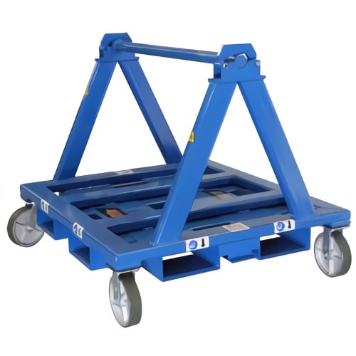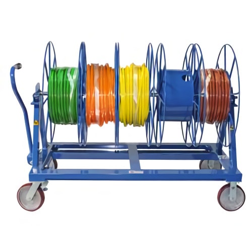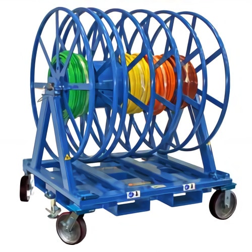 Transporta carretes de cable de gran volumen con o sin equipo adicional de manejo de materiales y tiene un mango giratorio ergonómico permite a los usuarios maniobrar la unidad manualmente.