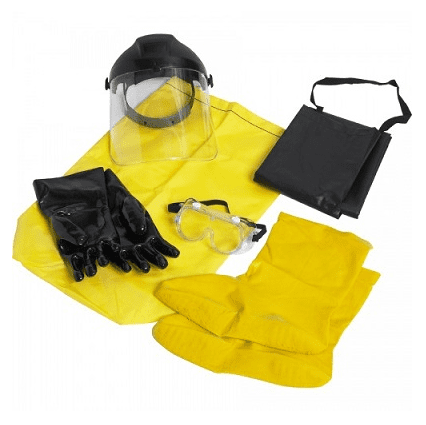 Brinda protección adicional al personal cuando riega o cambia las baterías y mientras limpia y neutraliza los derrames de ácido de la batería.