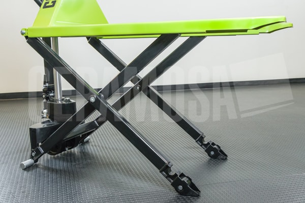 Construído para trabajar de forma versátil, es utilizado para la carga y descarga de sistemas conveyor o bandas transportadoras. Funciona perfectamente como estación de trabajo móvil, su diseño ergonómico permite al operador colocar la carga a la altura requerida para trabajar, elimina la necesidad de agacharse o doblar la columna vertebral, evitando lesiones de espalda en el área de trabajo. Está diseñado para la transportación y levante manual de cargas en pallets o contenedores que no tienen travesaños inferiores.