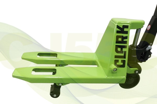 El CJ55C está diseñado con horquillas más cortas para trabajar con Pallets de dimensiones especiales, para tomar la carga hasta el fondo sin que las horquillas sobresalgan del Pallet, ayudando también a maniobrar en espacios reducidos.