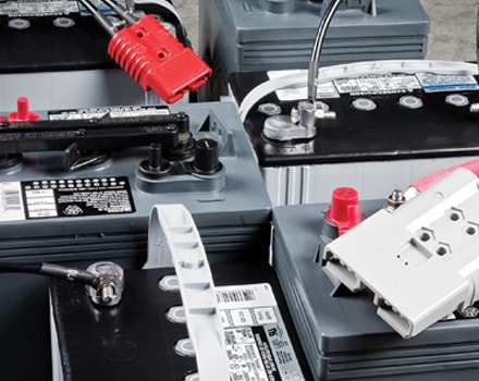 Cualquiera que sea su marca de montacargas, tenemos todo tipo de baterías y cargadores industriales, así como conectores, además de equipos para cambio y traslado, estaciones de carga, camas de rodillos, y todo el equipo y material que su empresa necesita para mantener sus baterías en buen estado y eliminar los derrames de ácido.