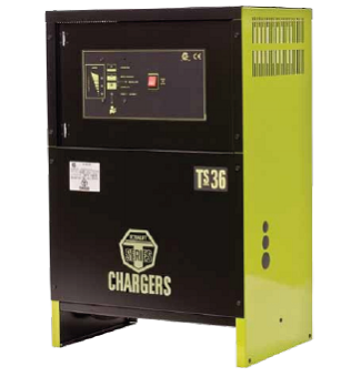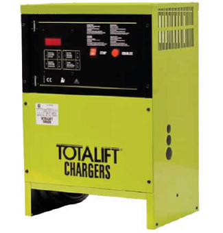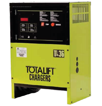 Los cargadores TOTALIFT T-Series incluyen el 110/120 volt AC (enchufe) portátil de fase sencilla o el 480 volt AC de fase triple. La operación de los cargadores TOTALIFT T-Series es controlada por el nuevo controlador MRG, lo cual utiliza una tarjeta electrónica de control con microprocesador. El controlador MRG cubre el ciclo de carga completo y tiene varias características de seguridad.