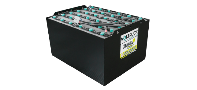 Voltruck ofrece baterías y cargadores industriales para sus montacargas eléctricos.